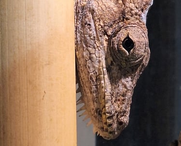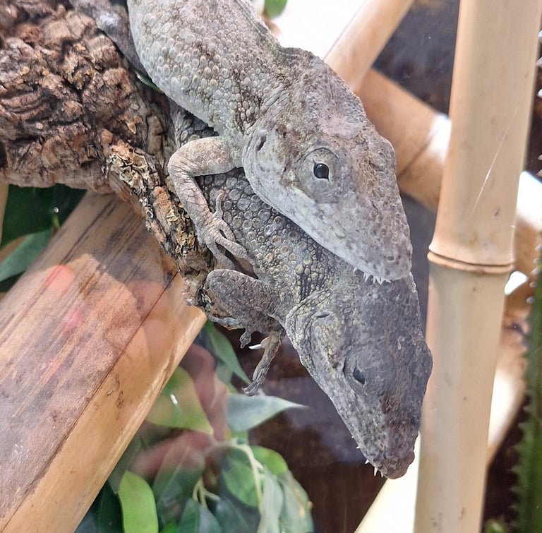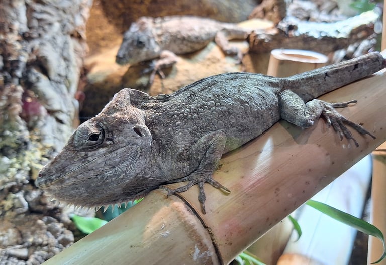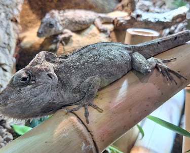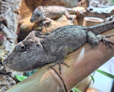 Bei Anolis barbatus handelt es sich bei einer Gesamtlänge von bis zu 35cm um einen großen Vertreter der Gattung Anolis. Die Tiere besitzen eine grau-braune Grundfärbung mit unterschiedlicher Fleckenzeichnung.
