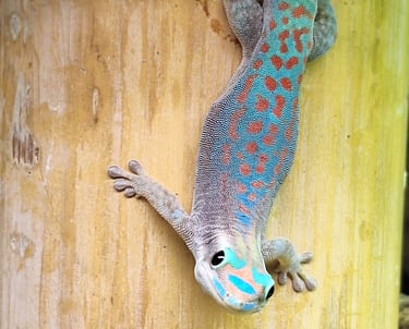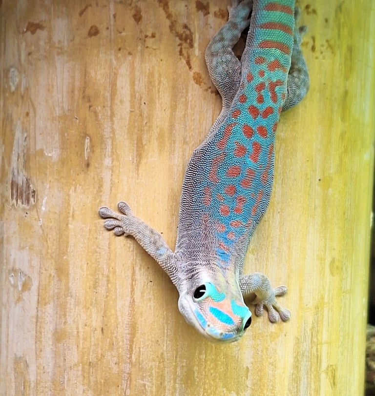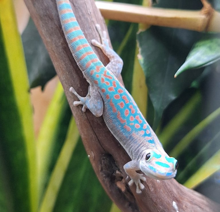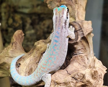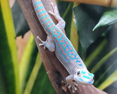Phelsuma ornata ist eine eher scheue Art, die bei mir beim Öffnen des Terrariums in Deckung geht.